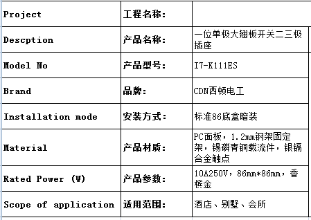 • 一位单极大翘板开关二三极插座 I7-K111ES