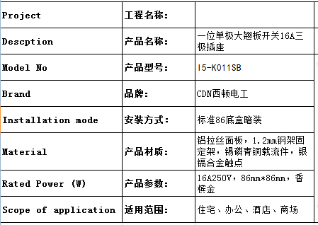 • 一位单极大翘板开关16A三极插座 I5-K011SB