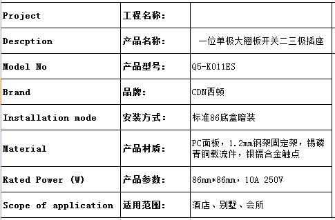 • 一位单极大翘板开关二三极插座 Q5-K011ES