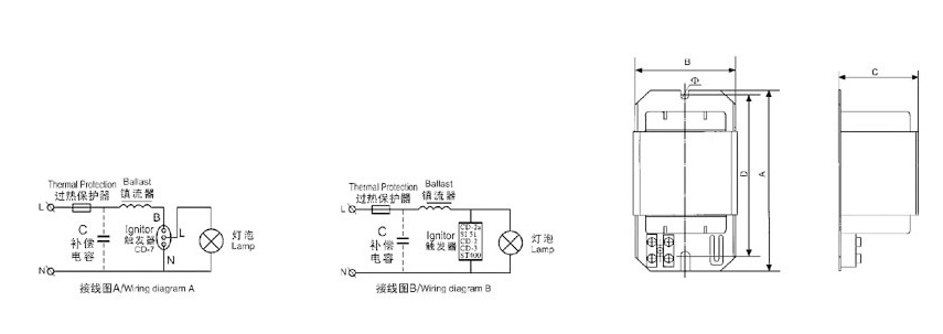 外形美观、体积小巧、结构紧凑,是钠灯照明电路中的关键部分。并具有过热自复保护功能。